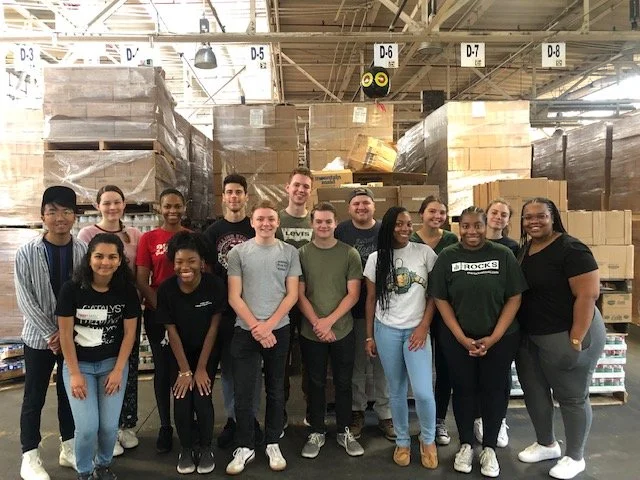 Community service at a Detroit food bank with InnovateGov students, 2019